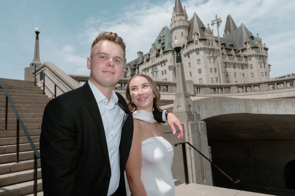 The energy of the city matched the couple’s vibe: polished but never stiff, romantic with a side of modern edge. We moved through the grounds of Parliament Hill, wandered along the canal, and ended with golden-hour portraits near the Château—letting the city serve as a natural extension of their love story.