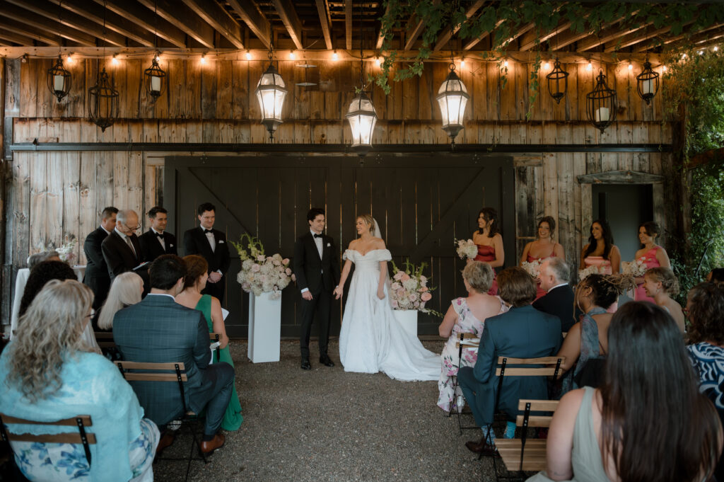 This venue features 2 getting ready spaces, including a heritage farmhouse and pub, and a sun-filled bridal great room. Additionally, Stonefields offers a selection of ceremony spaces including an elegant ceremony house, or an outdoor ceremony space under a canopy of trees. Their barn-style reception space is impressive, with lofted ceilings, a magical chandelier, and so much potential to add all your personal touches.